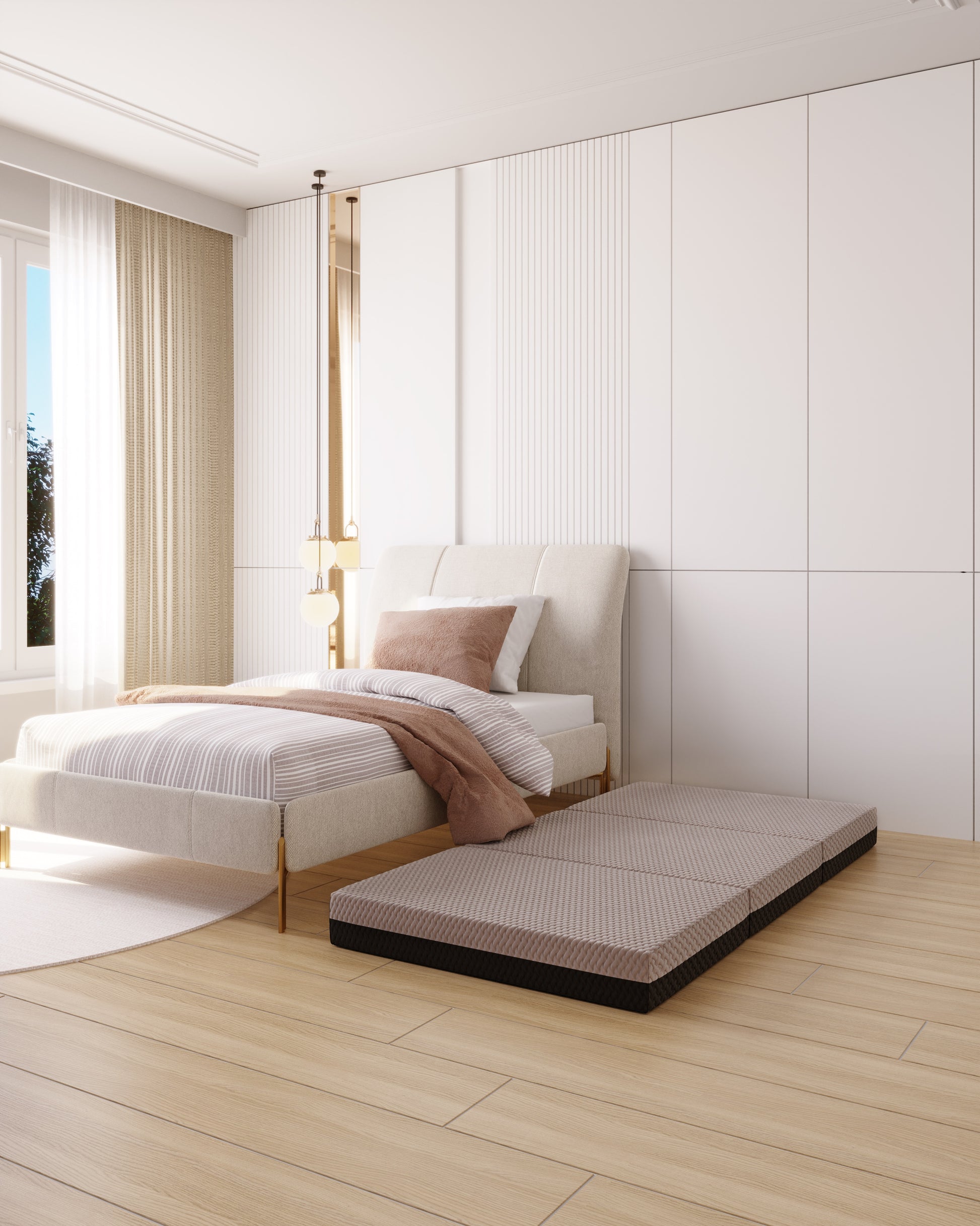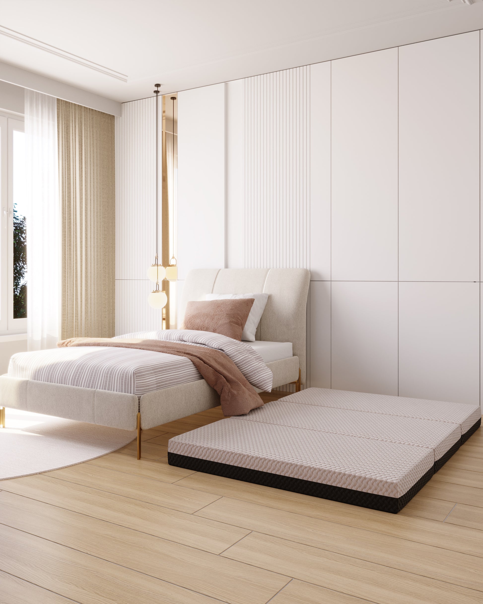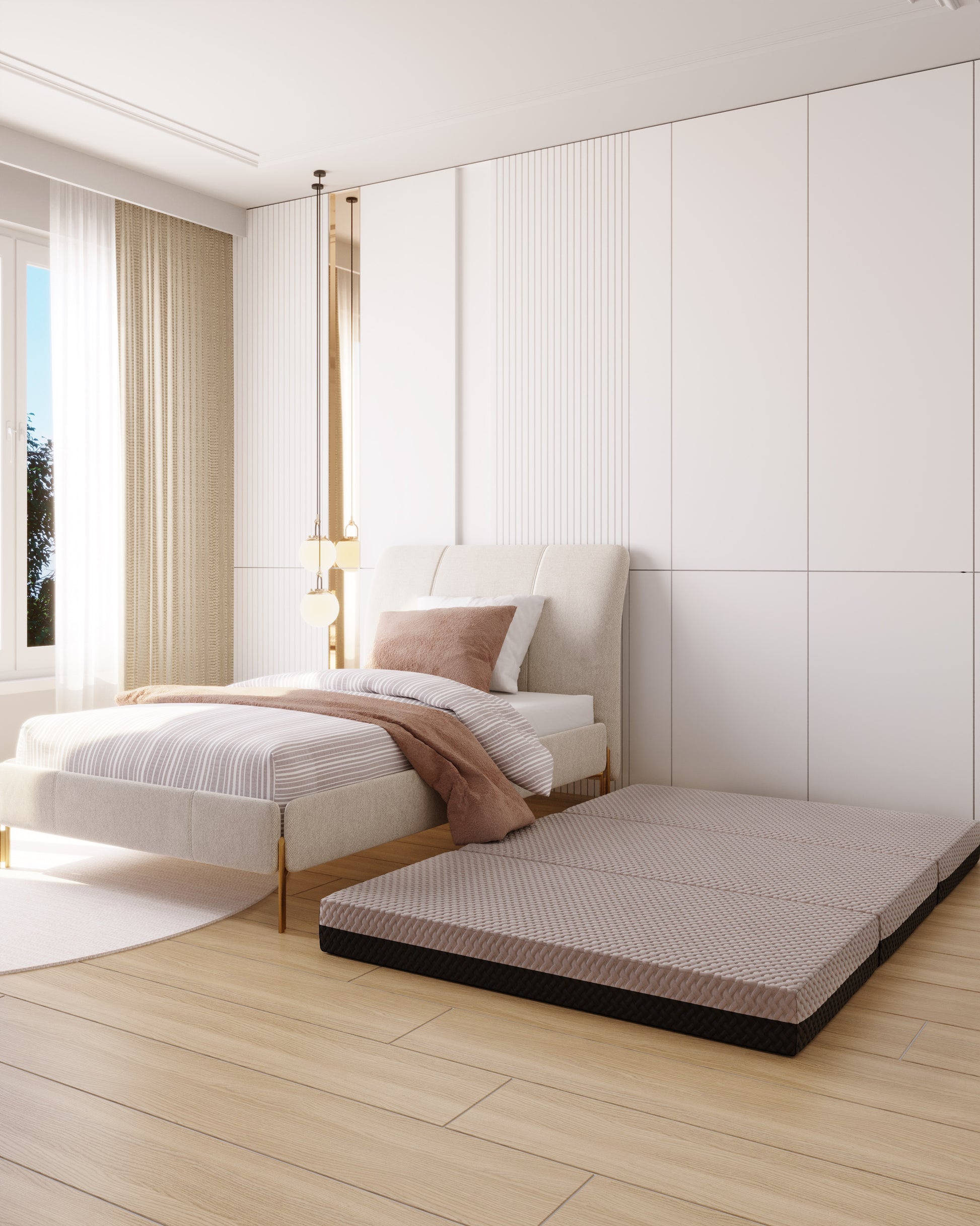 - Portable- The mattress ships compressed and rolled. While you can sleep on it immediately, allow up to 72 hours for the mattress to reach its full comfort level. This trifold is great for all home and travel use. Just fold and go!